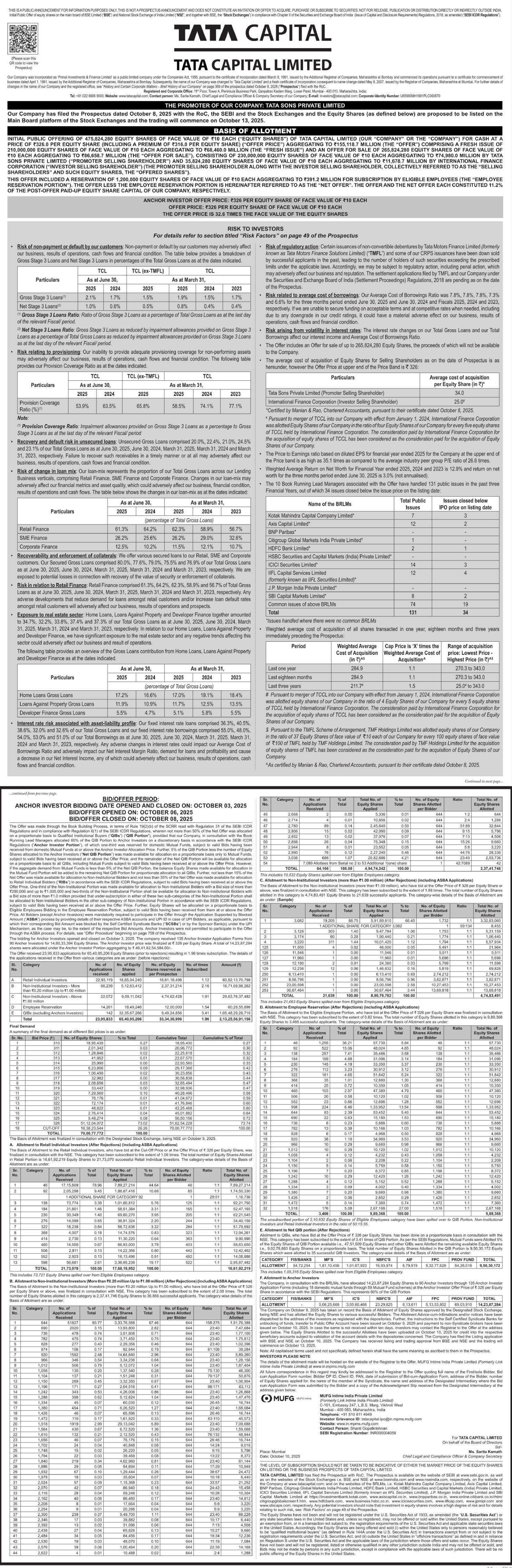 Tata Capital Lot(s) Distribution