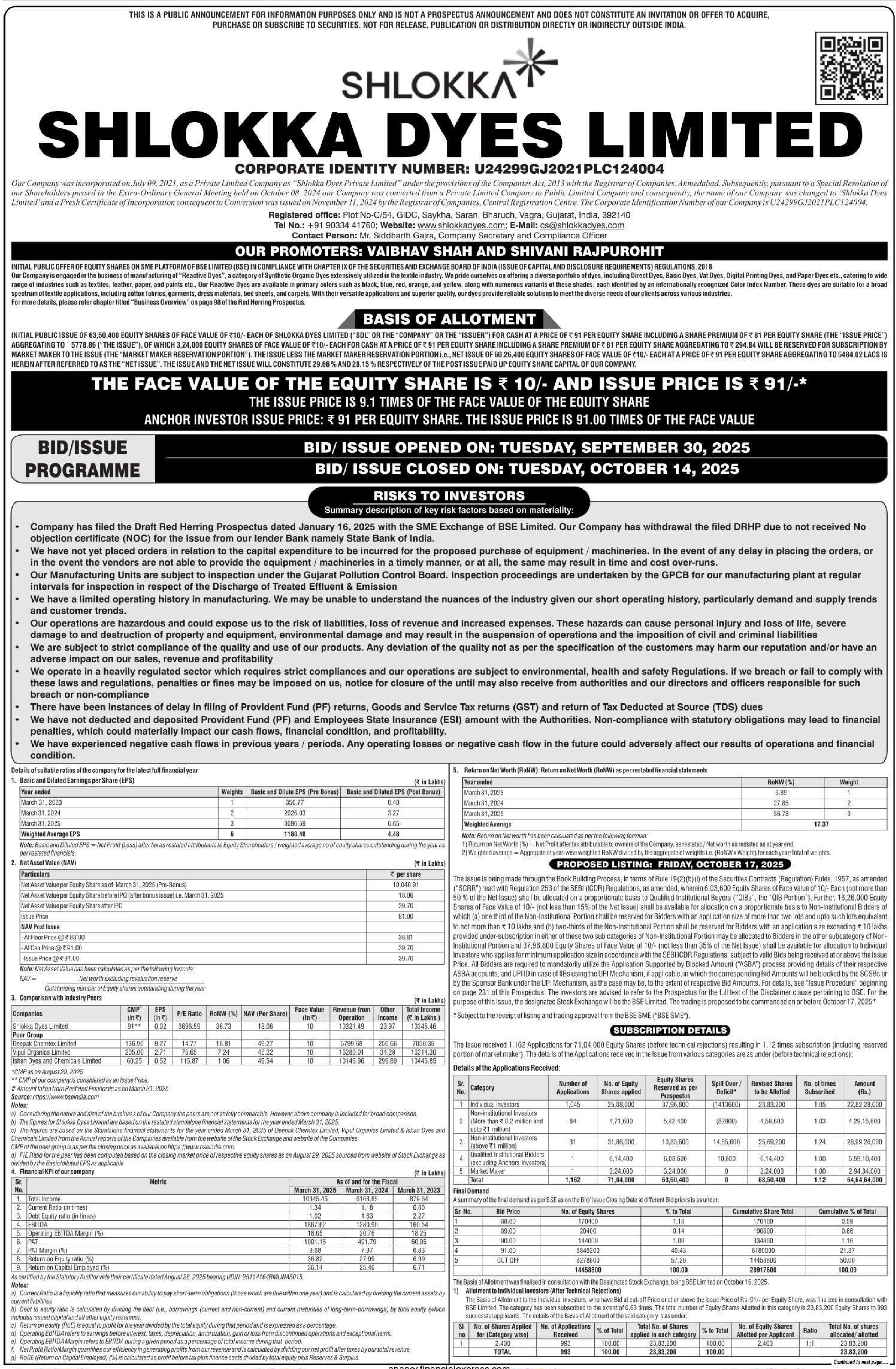 Shlokka Dyes IPO Details
