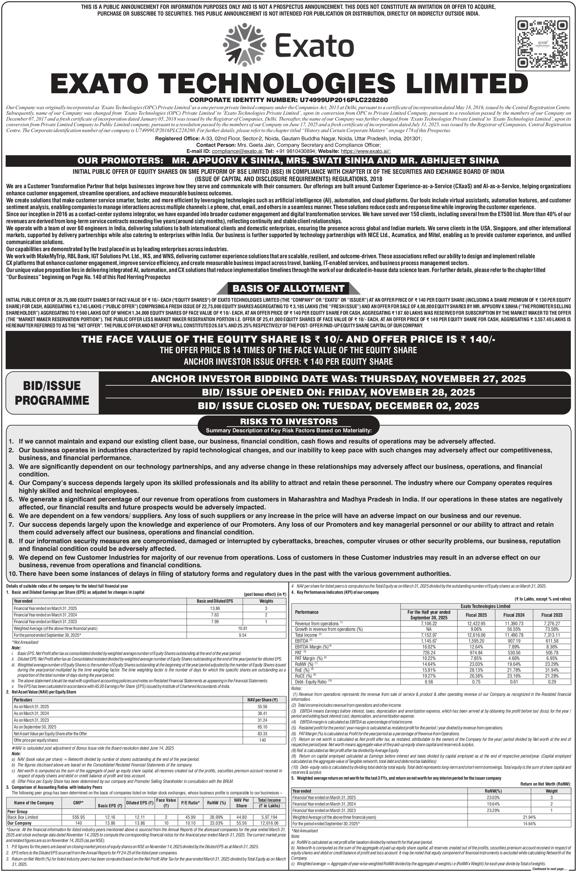 Exato Technologies Listing Price