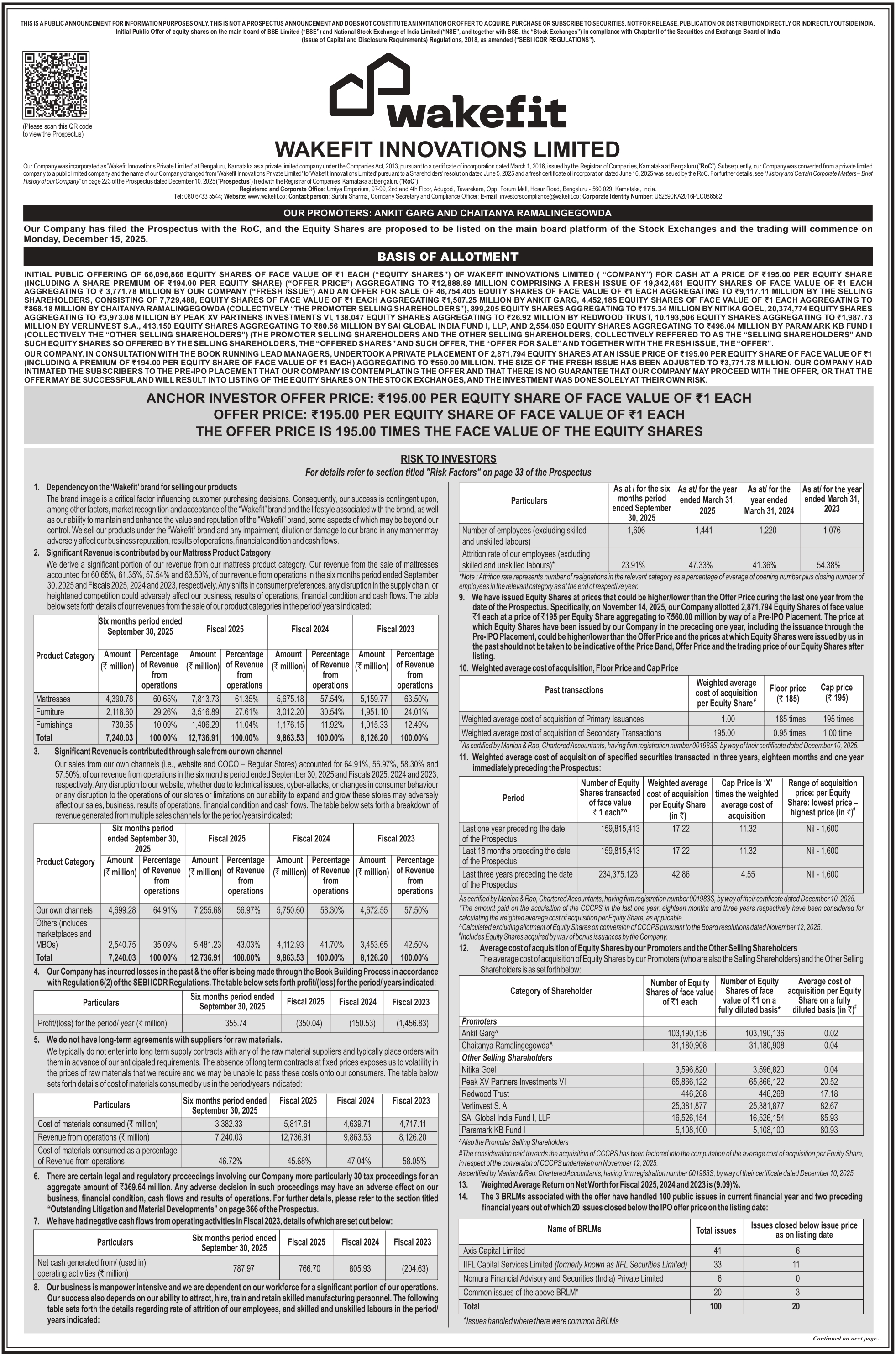 Exposure to Legal and Regulatory Proceedings: The company, along with its Directors, Promoters, and Senior Management, is involved in certain legal and regulatory matters. Any adverse judgment in these cases could harm Wakefit’s reputation, business continuity, financial condition, and cash flows.