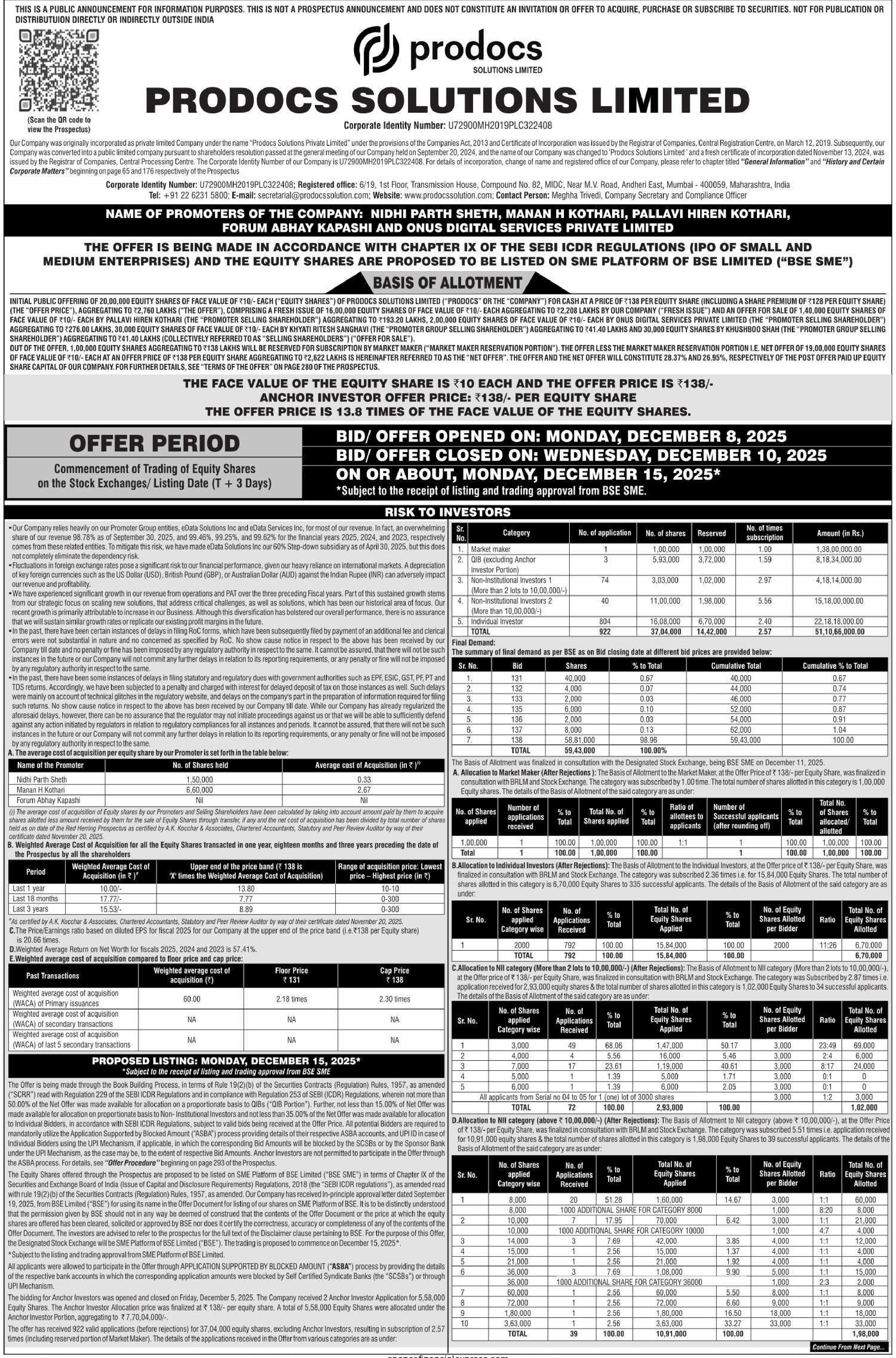 | Listing At | BSE SME |