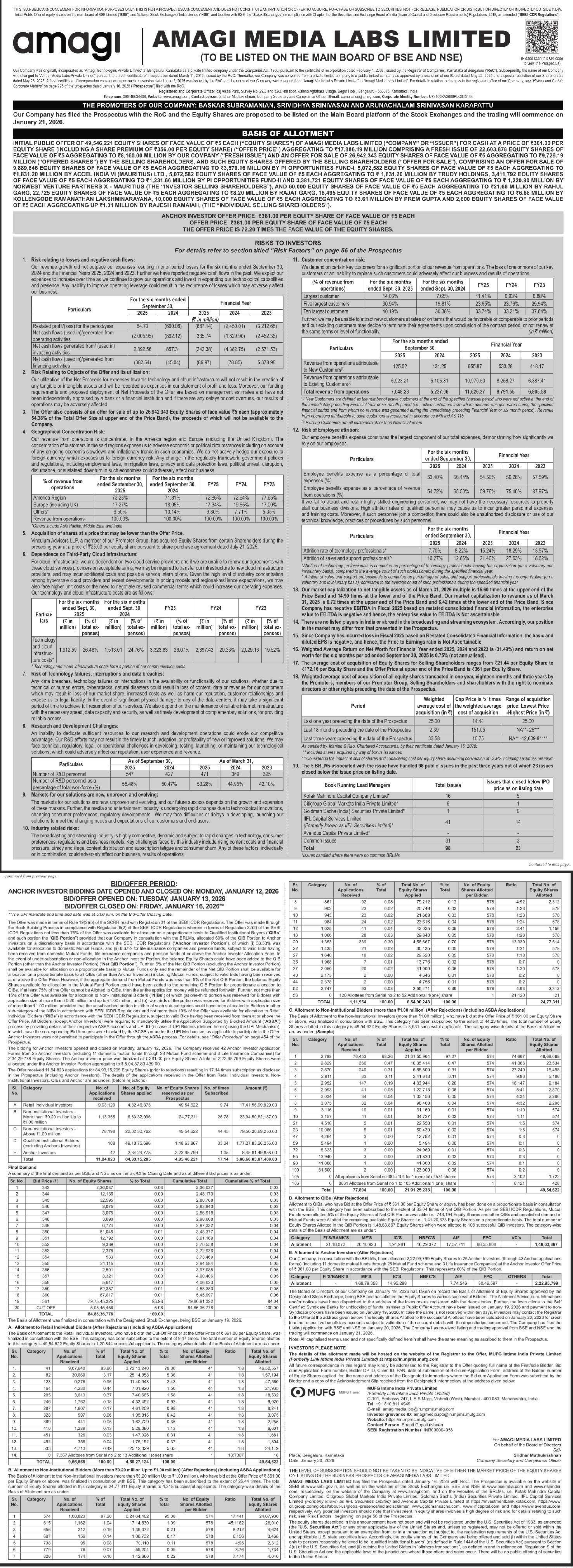 Amagi Media Labs Ltd., incorporated in 2008 and headquartered in Bengaluru, India, is a global provider of cloud-based broadcast and Connected TV (CTV) technology solutions. The Company offers end-to-end, software-as-a-service (SaaS) platforms that enable broadcasters, content owners, and streaming platforms to create, distribute, and monetise content across traditional television and digital streaming ecosystems.