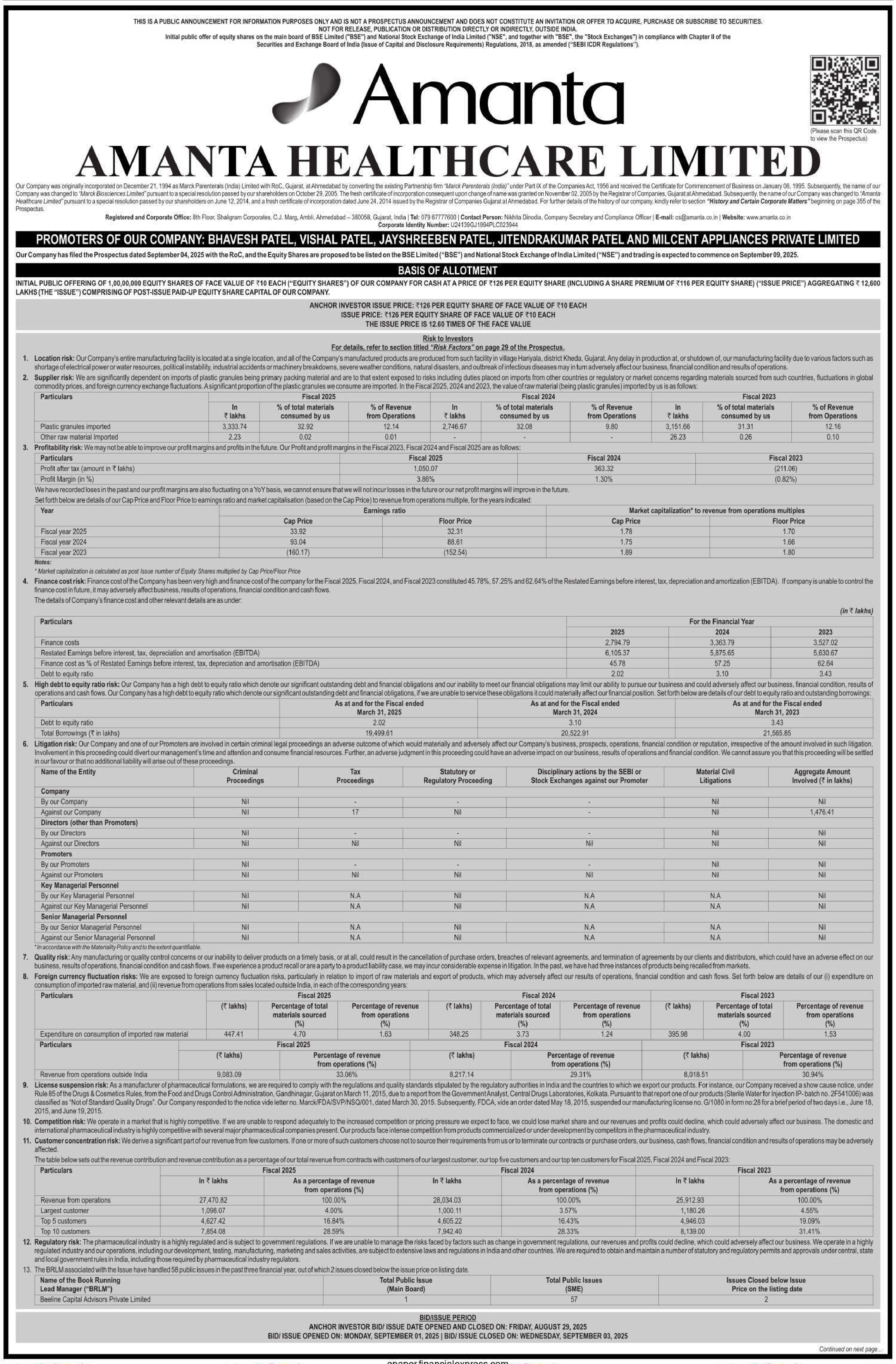 Single Manufacturing Facility Risk: Dependence on one facility in Gujarat exposes operations to disruptions from power shortages, accidents, natural disasters, or other unforeseen events.