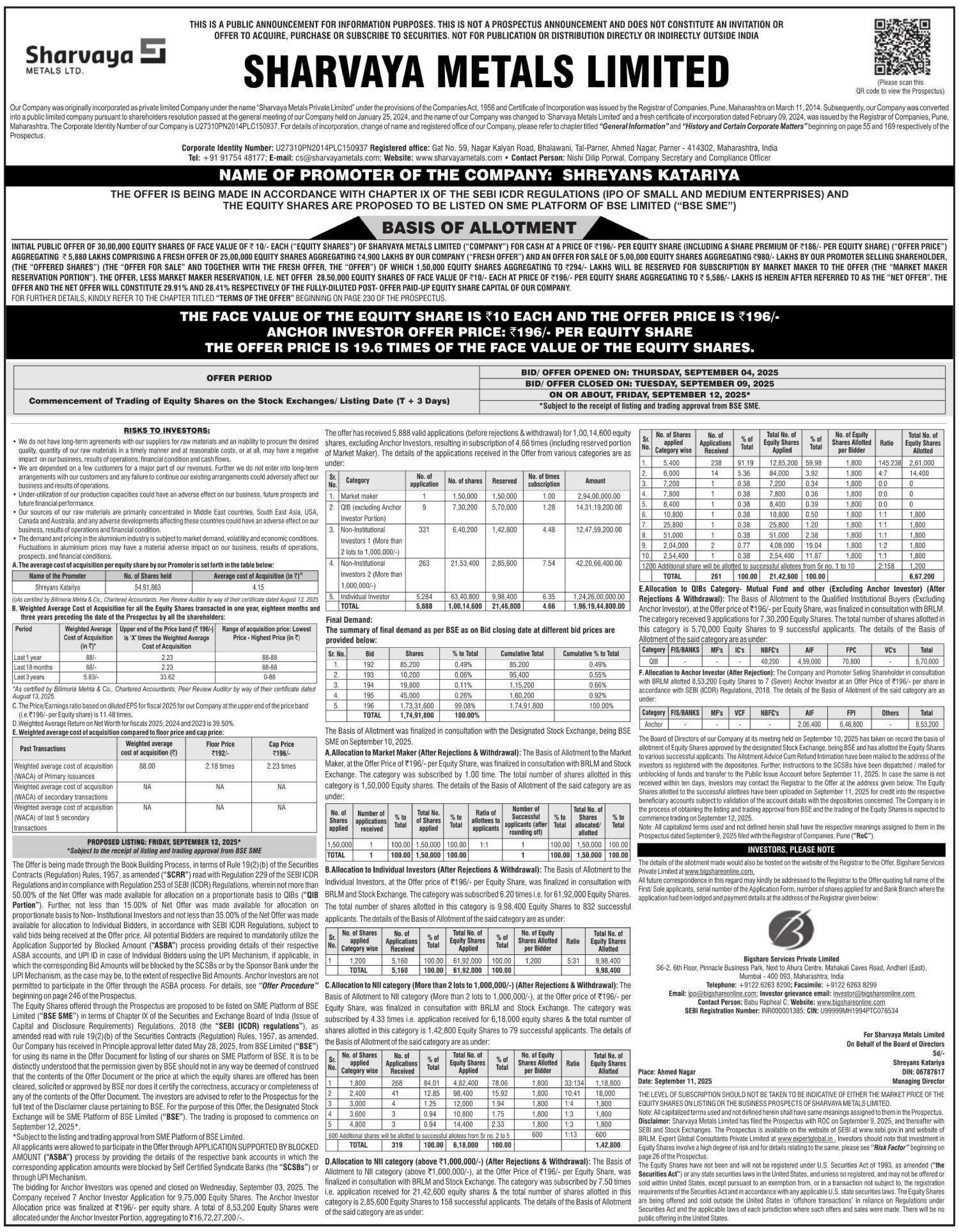 Sharvaya Metals Listing Price