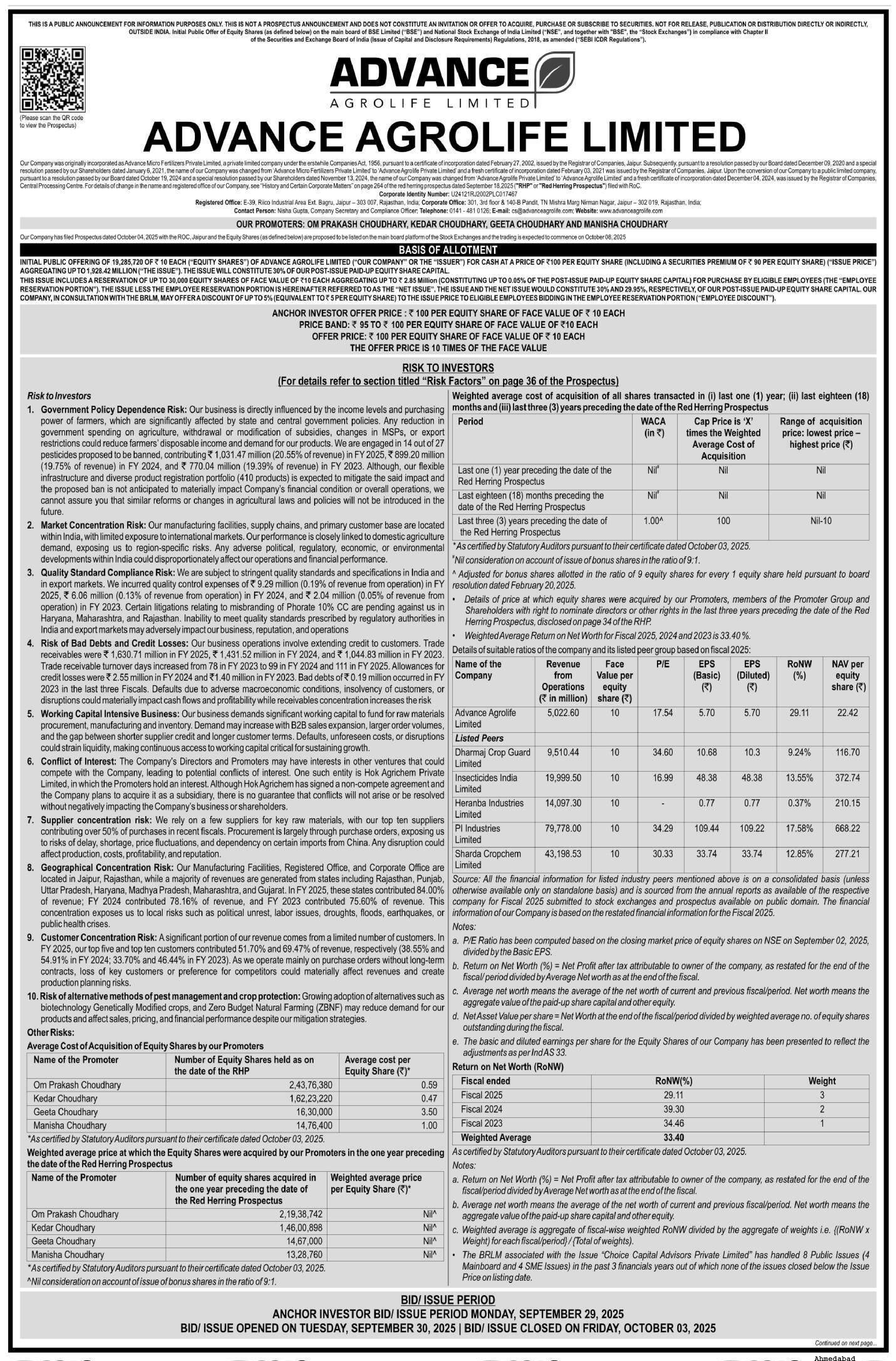 | Advance Agrolife Ltd. | 22.42 | 29.11 | 5.7 |
