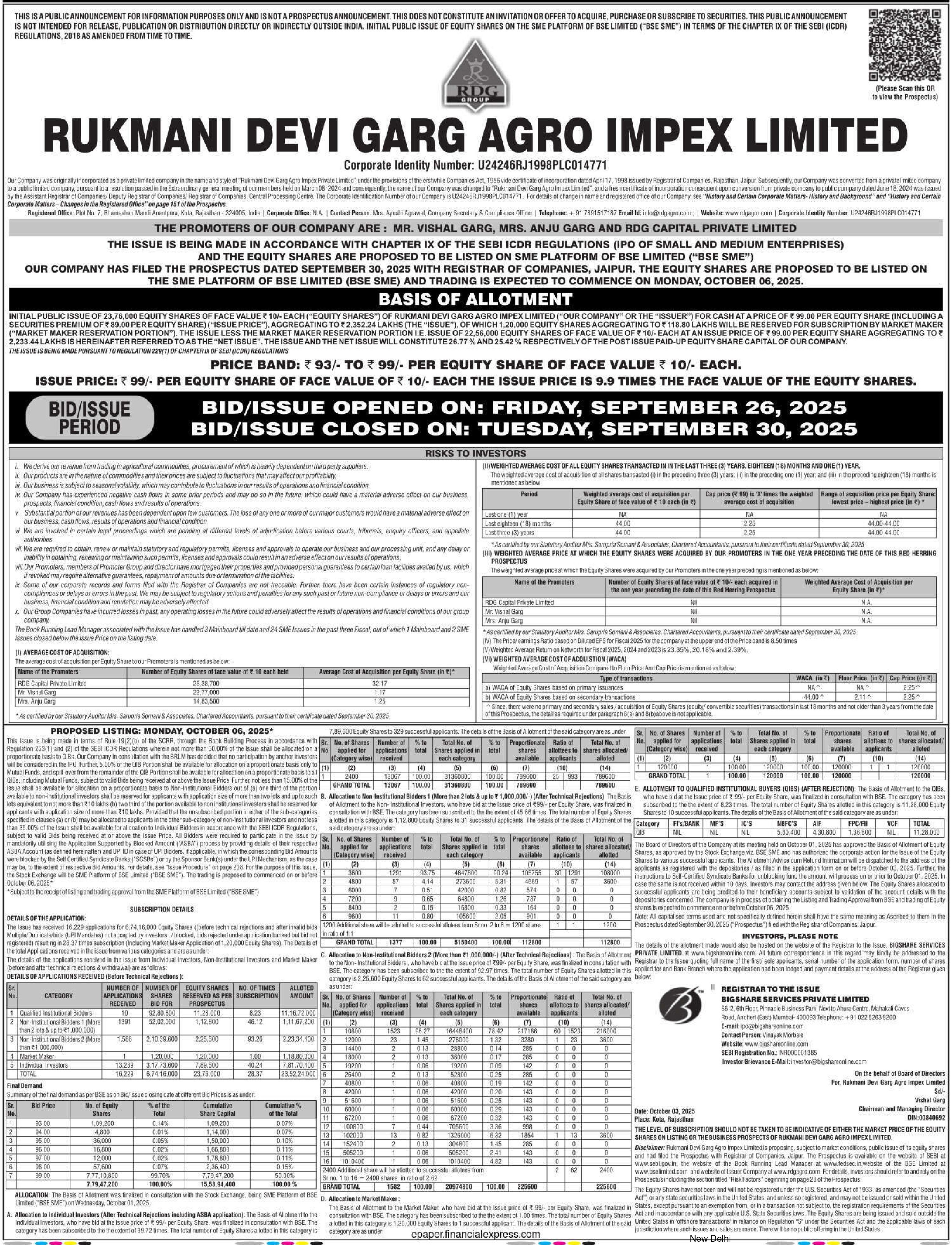 Rukmani Devi Garg Agro Impex Latest Announcements